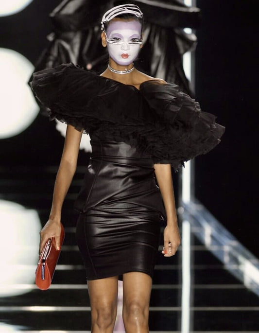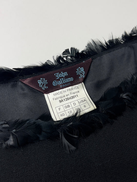 John Galliano Fall 1999 Feather-Trimmed Wool Little Black Dress