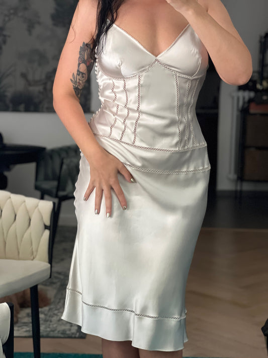 Dior by John Galliano Spring 2004 Bias-Cut Off-White Silk Satin Dress