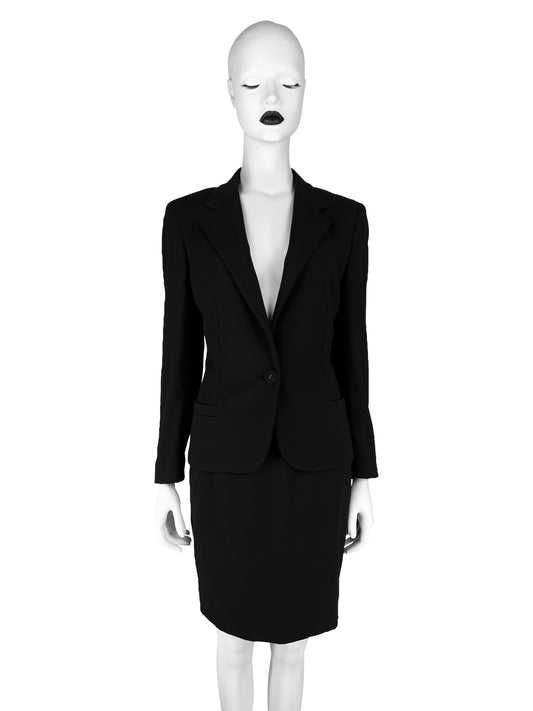 Gianni Versace Couture 1993 Classic Black Wool Skirt Suit with Medusa Button Detail