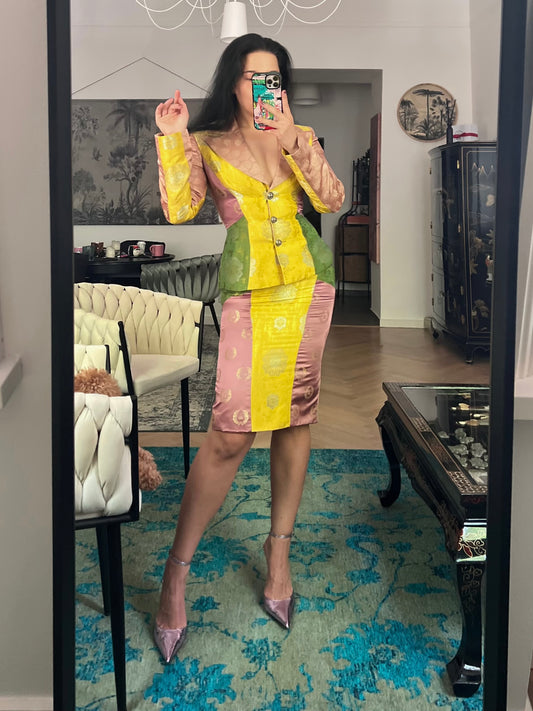 Versace Fall 2002 By Donatella Versace Patchwork Jacquard Skirt Suit