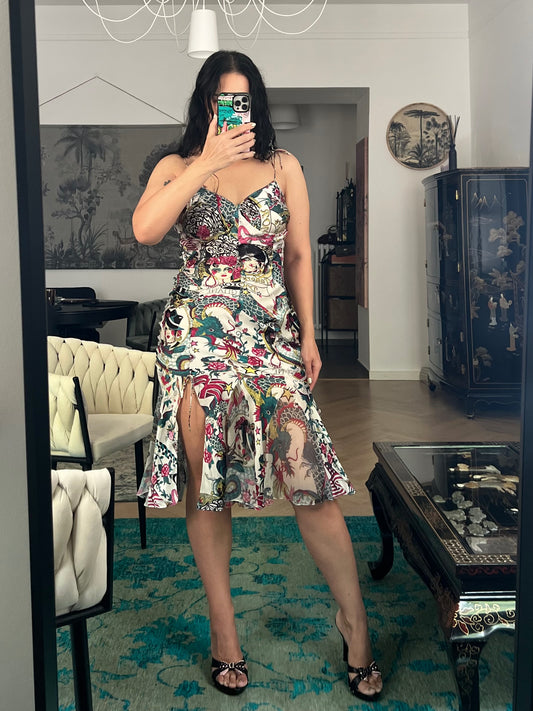 Dior by John Galliano Spring 2004 Gitane Print Bias-Cut Slip Dress