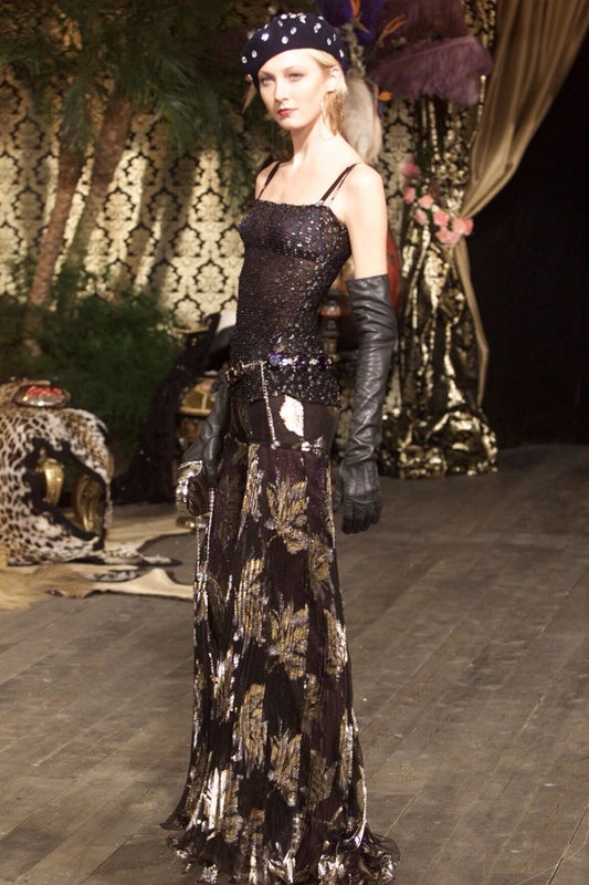 Dolce & Gabbana Fall 2000 Lamé Brocade Black Chiffon Silk Pleated Evening Trousers