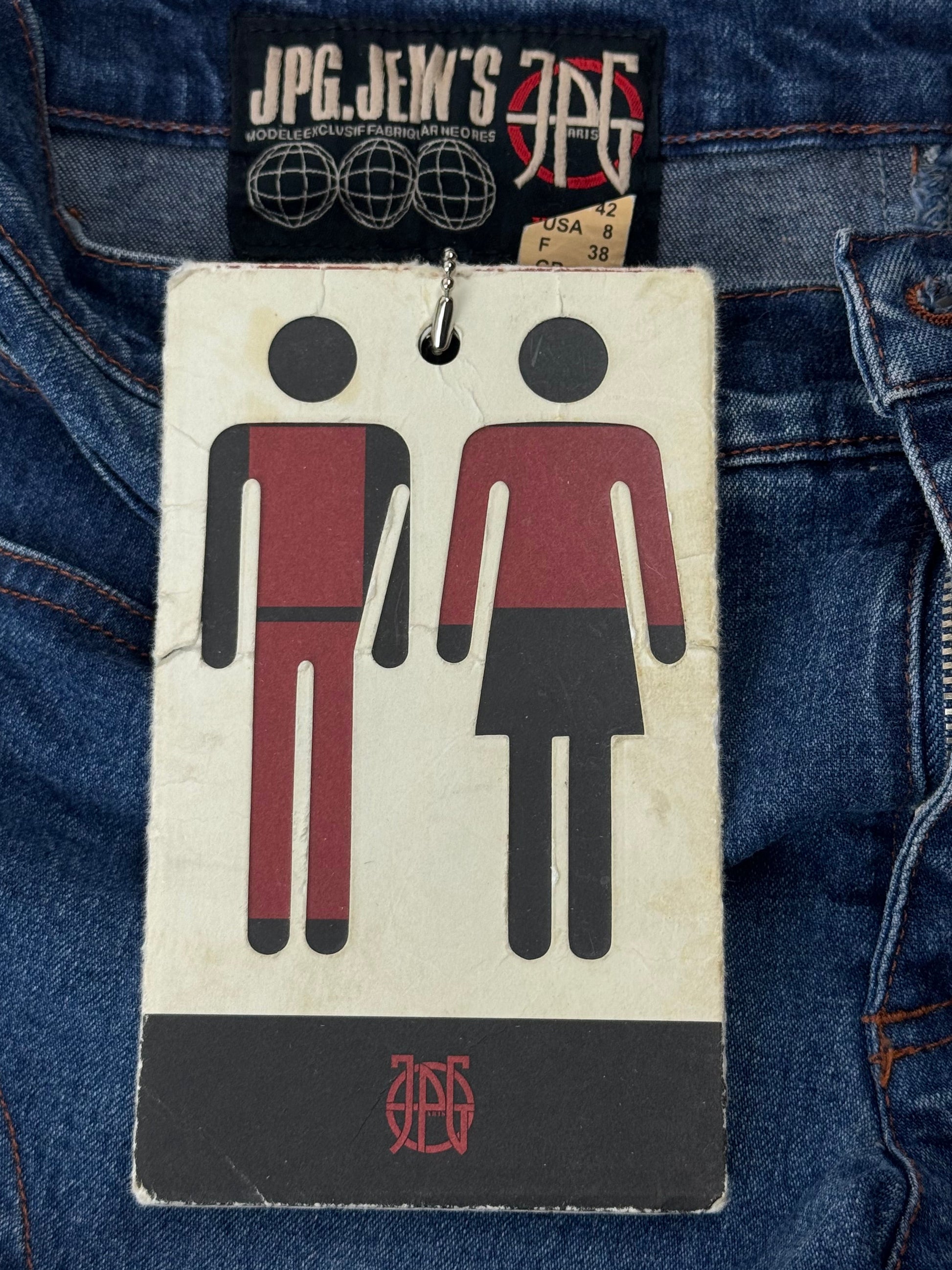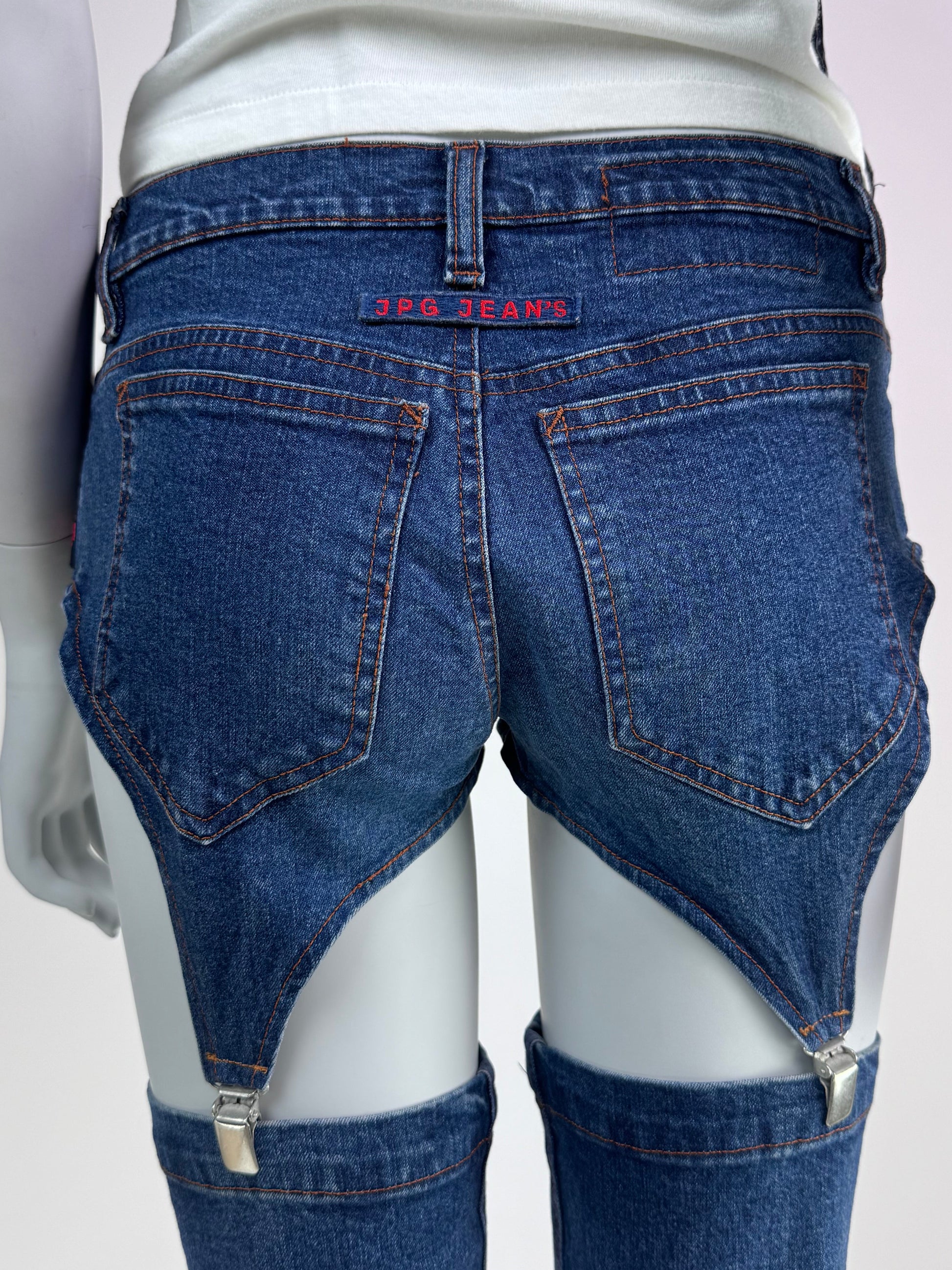 An ultra-rare, virtually never-seen piece from the iconic Jean Paul Gaultier Jeans line, dating to the 1990s — a true collector’s item from Gaultier’s most experimental era.